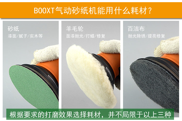 --粗磨偏心度幅度為9.5mm,扭力大,切削能力更大,適合重力打磨。工件一般幅面較大,要求打磨速度快,粗糙的打磨表面,如:玻璃鋼,UV,原子灰等材質比較硬的工件,所用砂紙規格120#以下;