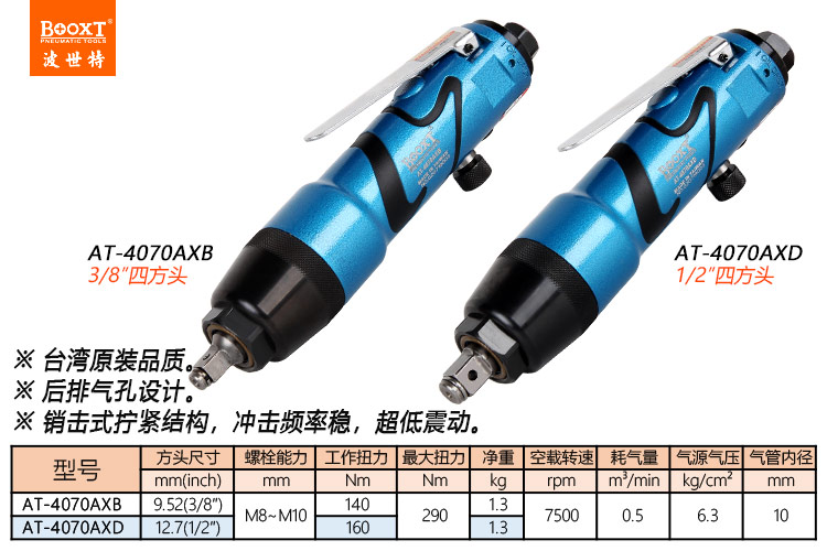東莞市強勁五金工具有限公司提供臺灣BOOXT波世特品牌氣動工具,銷擊式小風炮AT-4070AXD廠家直銷,首件享特價。咨詢熱線:4008301980