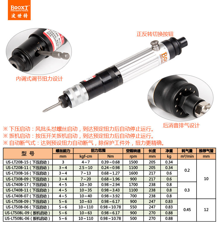 東莞強勁五金工具有限公司提供臺灣BOOXT波世特氣動工具,離合定扭力風批US-LT40B-07系列廠家直銷,首件享特價。咨詢熱線:4008301980