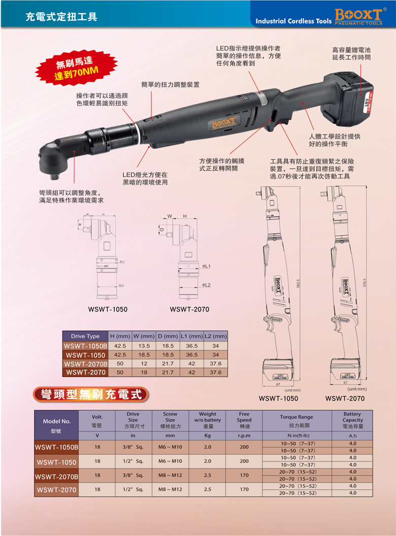 東莞強勁五金工具有限公司提供臺灣BOOXT波世特氣動工具,可調扭矩電動扳手WSWT-2070B廠家直銷,首件享特價。咨詢熱線:4008301980