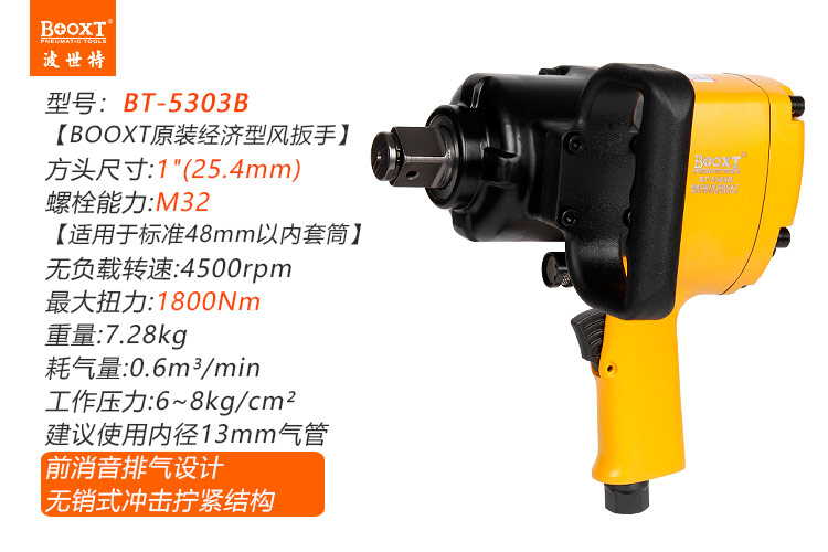東莞市強勁五金工具有限公司提供臺灣BOOXT波世特品牌氣動工具,重型風動扳手BT-5303B廠家直銷,首件享特價。咨詢熱線:4008301980