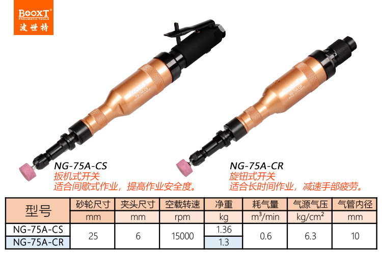 東莞市強勁五金工具有限公司提供臺灣BOOXT波世特品牌氣動工具,加長刻磨機NG-75A-CR廠家直銷,首件享特價。咨詢熱線:4008301980