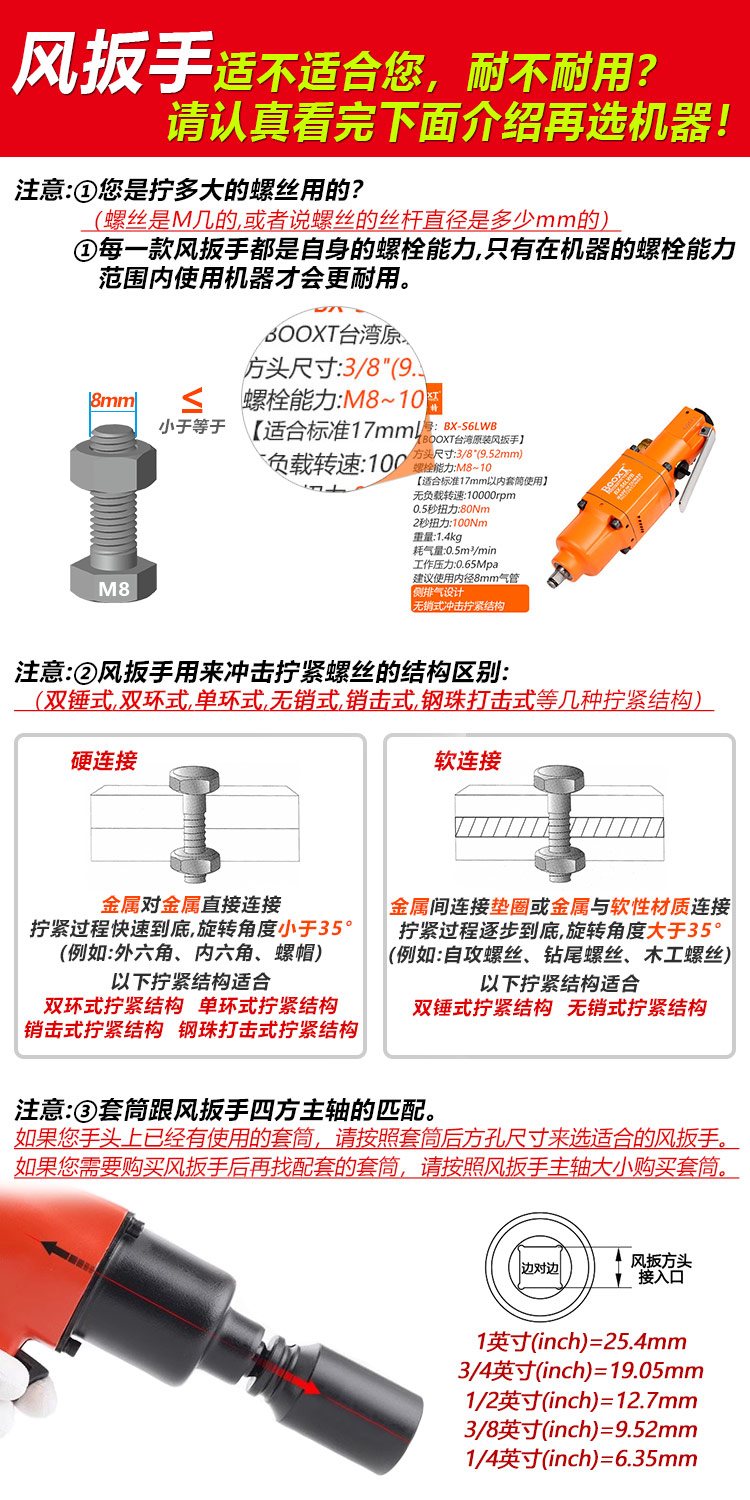 提示:因為不同制造工廠的測試標準不一樣,所測的扭力參數(shù)會相差比較大,另外測試扭力并不是實際螺栓擰緊的扭力(經(jīng)常有客人用這個扭力參數(shù)來選型是錯誤的),建議沖擊式的工具選型請按“螺栓能力”來選,才是專業(yè)的。