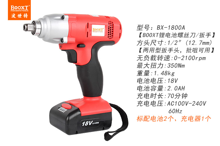 東莞市強勁五金工具有限公司提供臺灣BOOXT波世特品牌氣動工具,鋰電沖擊扳手BX-1800A廠家直銷,首件享特價。咨詢熱線:4008301980