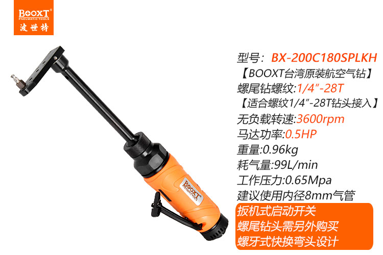 東莞市強勁五金工具有限公司提供臺灣BOOXT波世特品牌氣動工具,偏角螺尾氣動鉆BX-200C180SPLKH廠家直銷,首件享特價。咨詢熱線:4008301980