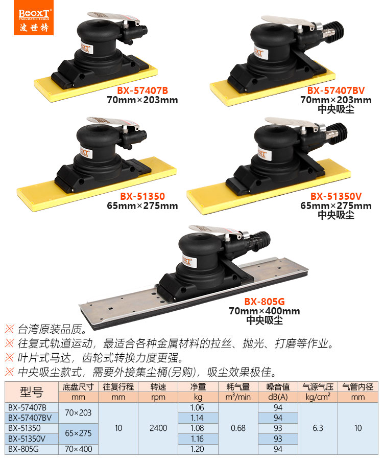 東莞強勁五金工具有限公司提供臺灣BOOXT波世特氣動工具,手提氣動拉絲機BX-51350廠家直銷,首件享特價。咨詢熱線:4008301980