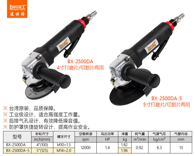 東莞市強勁五金工具有限公司提供臺灣BOOXT波世特品牌氣動工具,后排氣氣動角磨機BX-2500DA廠家直銷,首件享特價。咨詢熱線:4008301980