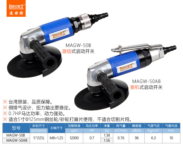 東莞市強勁五金工具有限公司提供臺灣BOOXT波世特品牌氣動工具,日式風(fēng)動角磨機MAGW-50AB廠家直銷,首件享特價。咨詢熱線:4008301980